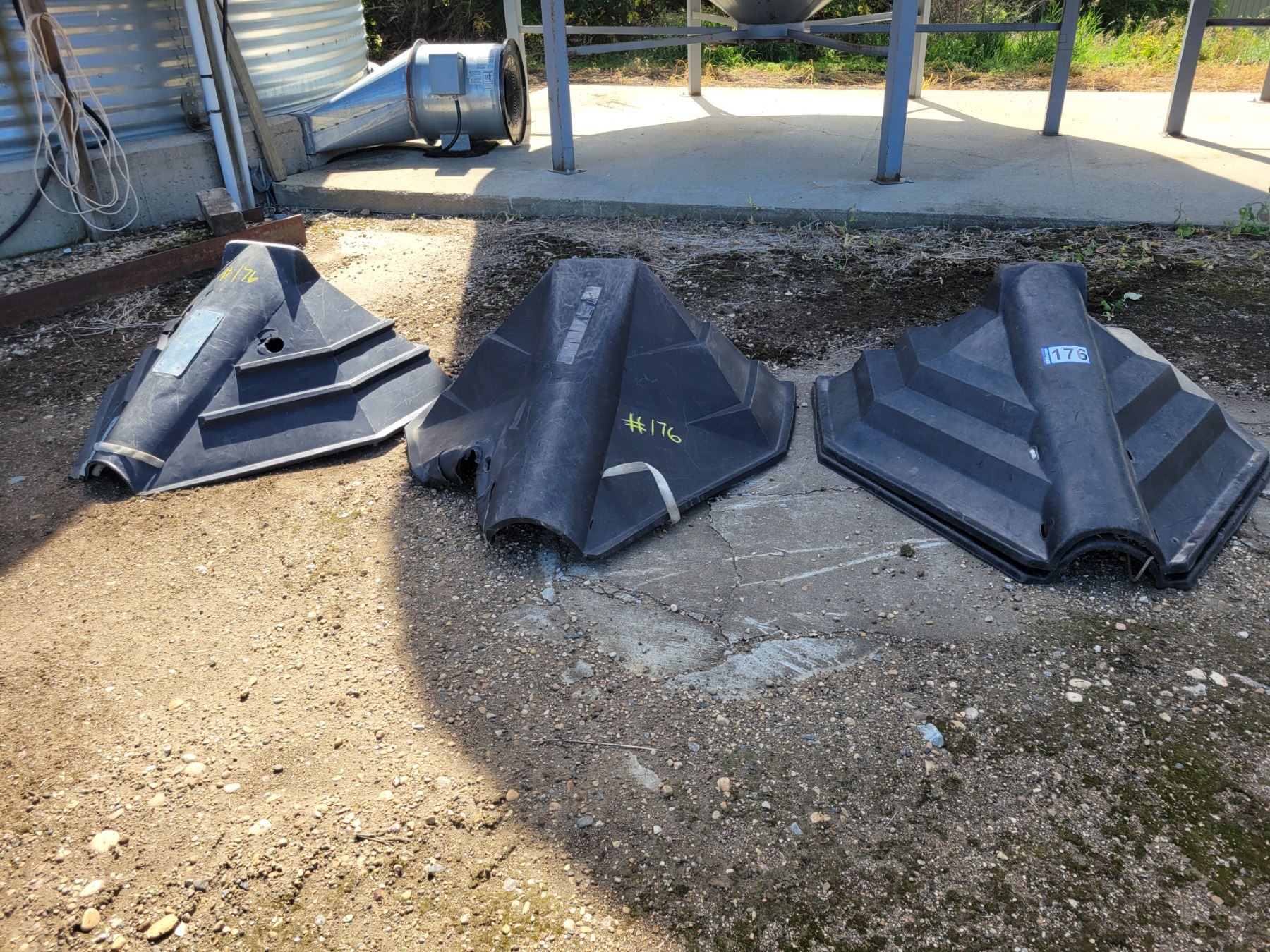 3- Black plastic auger hoppers, Absolutely NO REMOVAL Between July 31st to Aug 4th, PH: Conrad (780) 818-6179