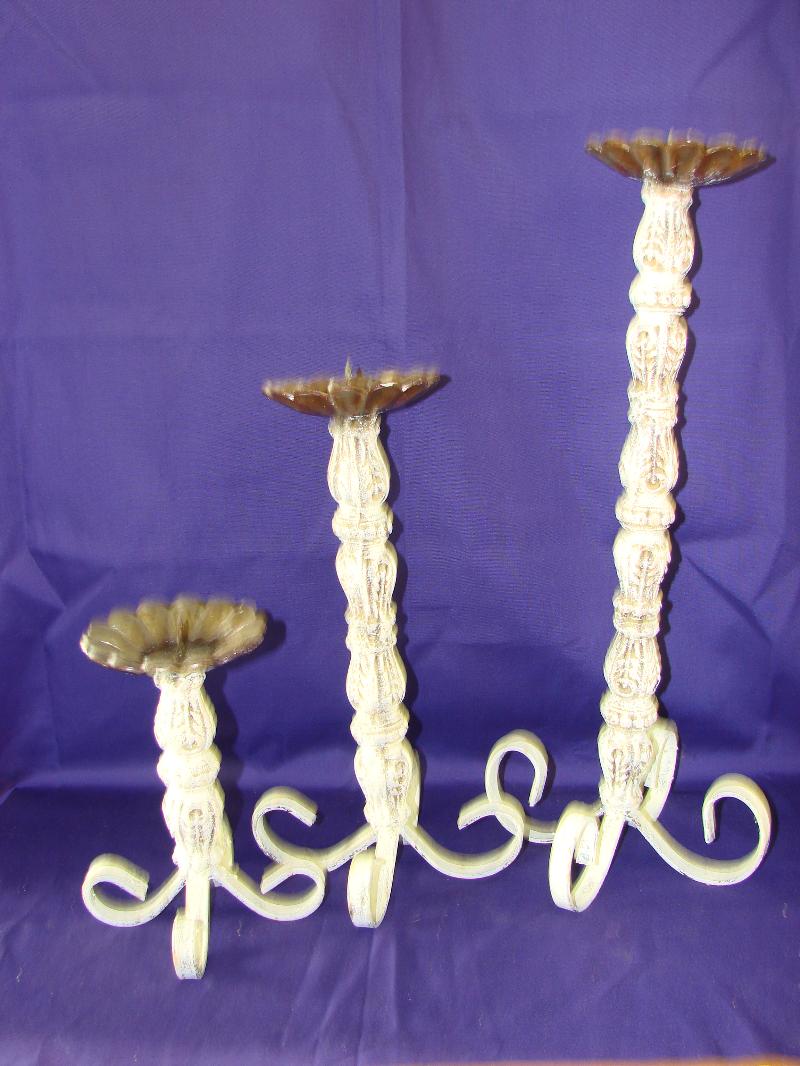 3 Wood & Metal Candlesticks, apprx. 7", 13" & 18"