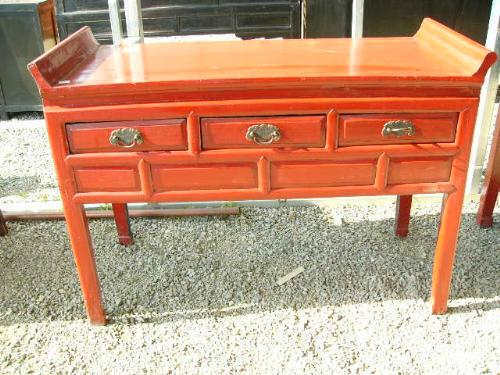 3 Drawer Table Red Finish circa 1920 34" H x 50" L x 21" Depth (800)
