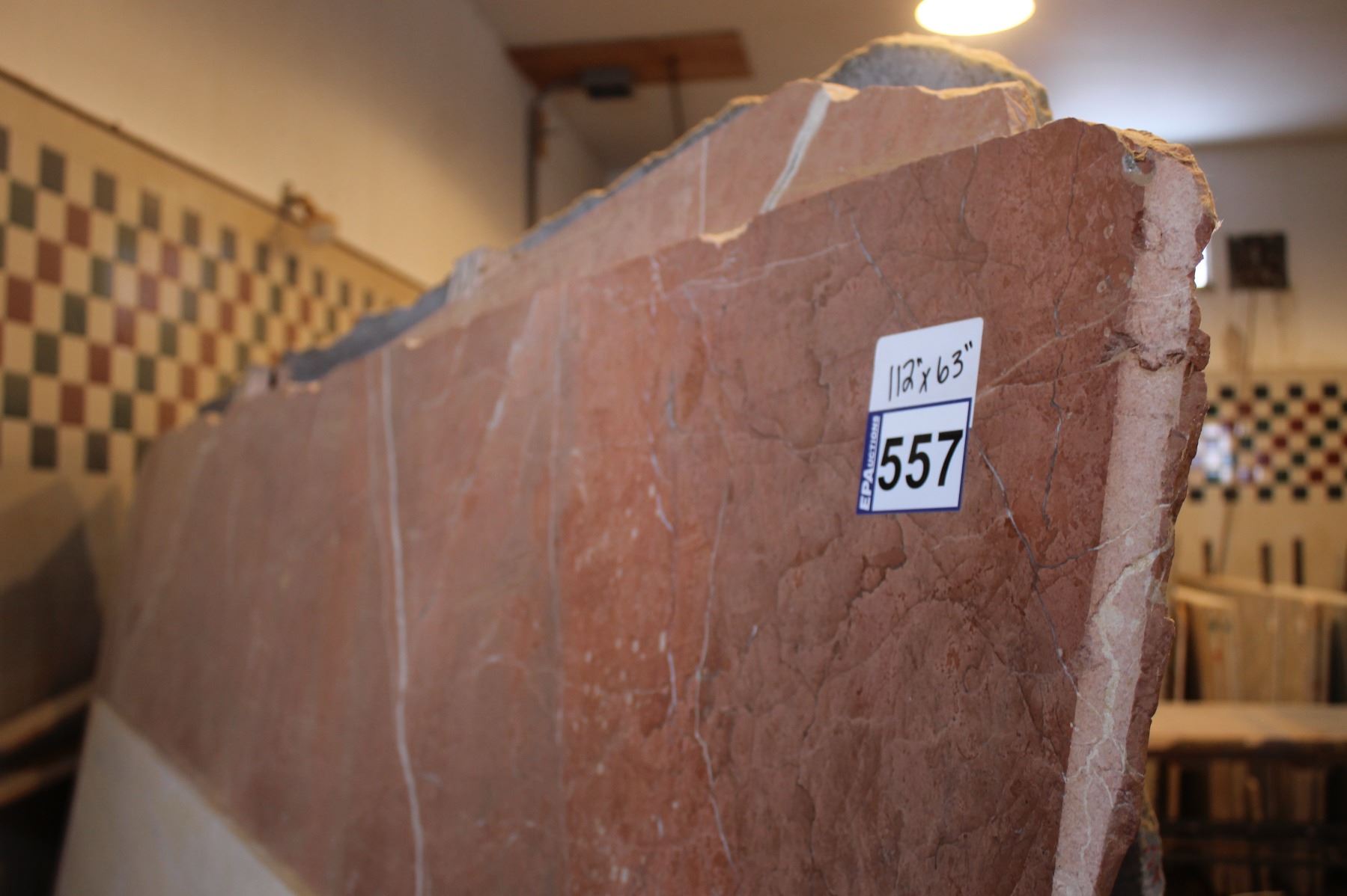 3- Full slabs, Approx. 112" x 63" x 1 1/4" thick, Rose alicante Marble (so much each x3)