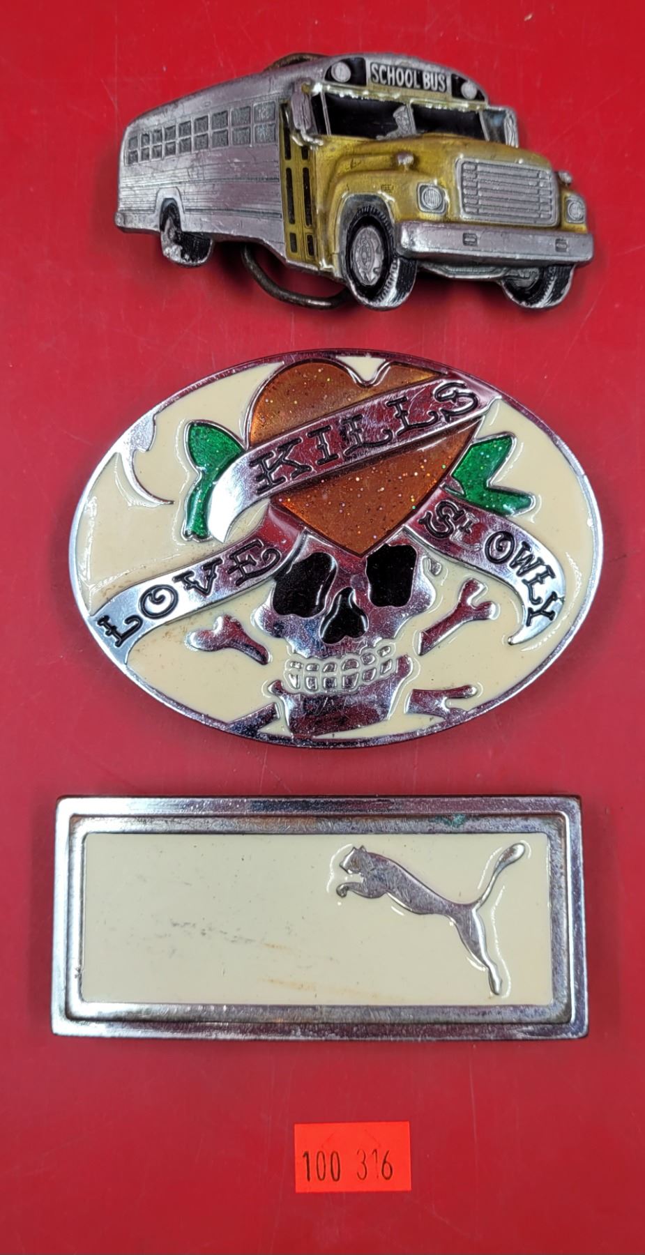 3 Metal Belt Buckles w/ Puma, Love Kills Slowly, & More