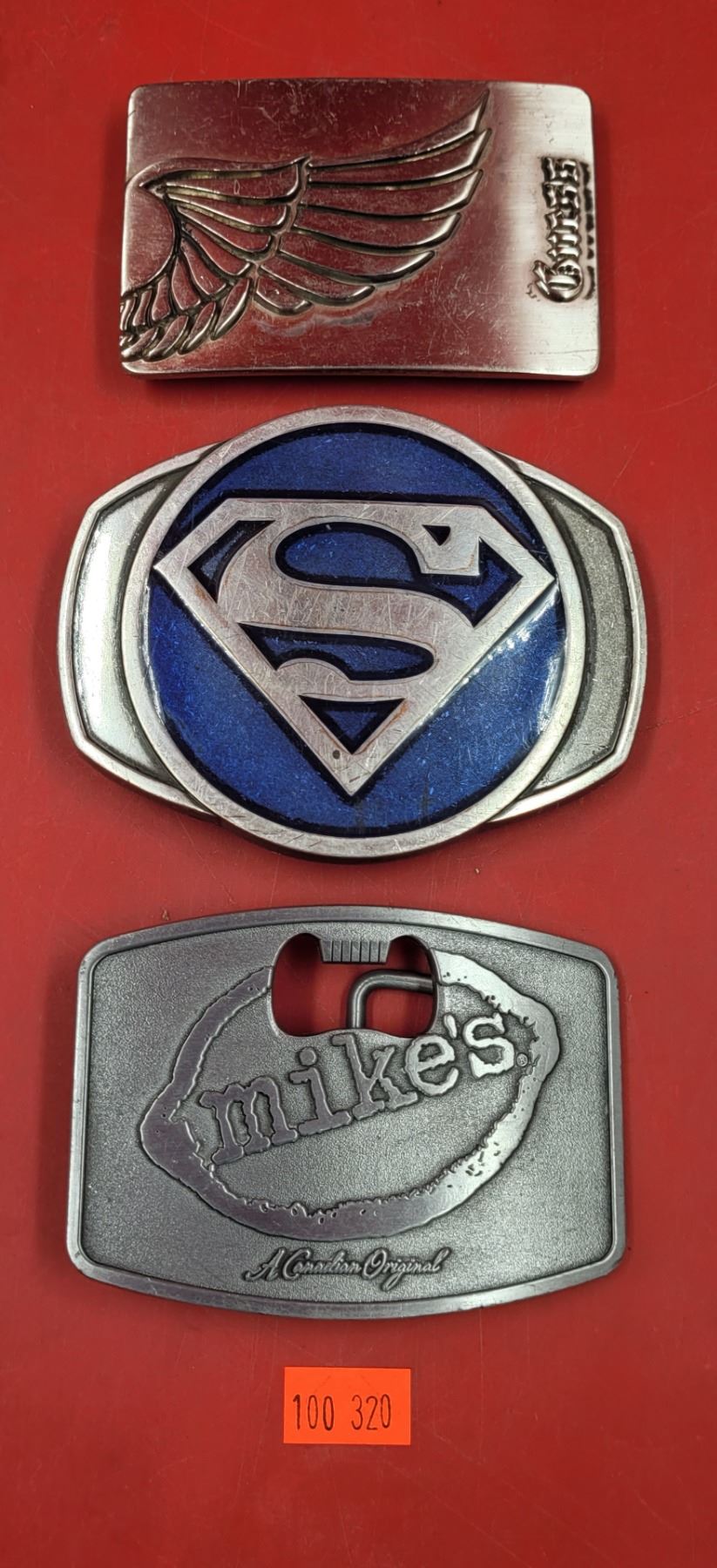 3 Metal Belt Buckles w/ Superman, Mike's Hard, & More