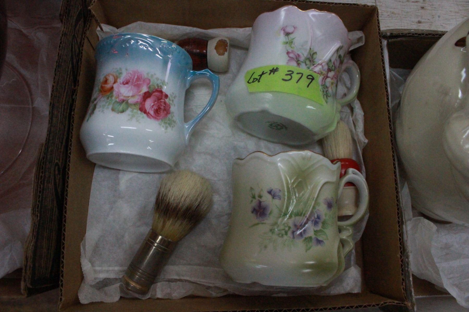 3 Moustache Cups - 2 Nippon, 1 has no name & 3 Brushes (1 is Brass)