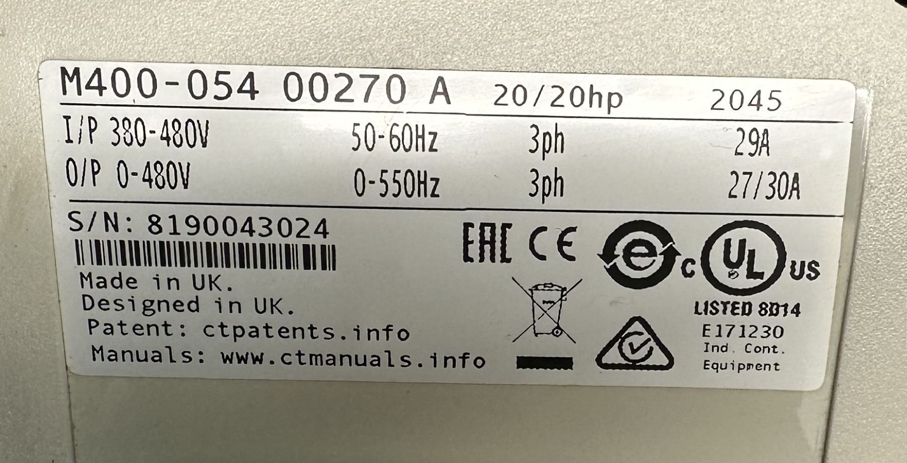 (3) Nidec Control Techniques #M400-054 00270 A 20/20hp 380-480V Inverter AC Drives