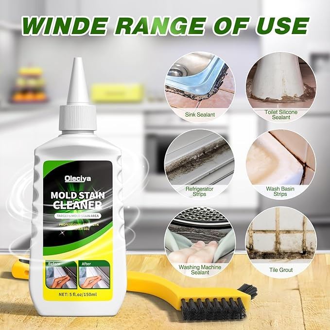 - Mould Remover Gel, Household Cleaning Mould Remover Kit, Grout Cleaner Gel with Brush and Cloth for Kitchen & Shower, Kitchen Sink, Tile Grout, Bathroom, washing machines, Refrigerator Sealant, etc.
