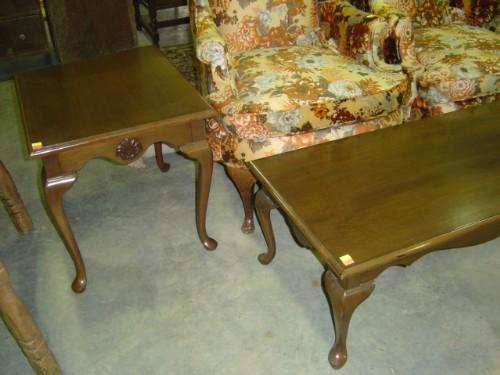 3-PIECE MAHOGANY COFFEE AND END TABLES; QUEEN ANN LEGS