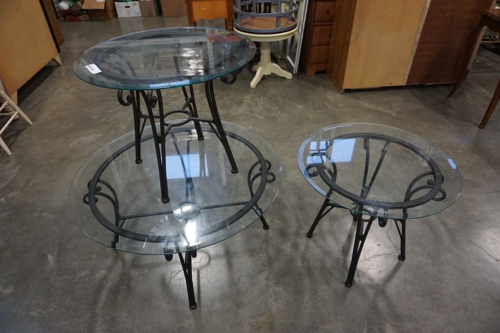 3 PIECE ROUND METAL GLASSTOP COFFEE TABLE SET