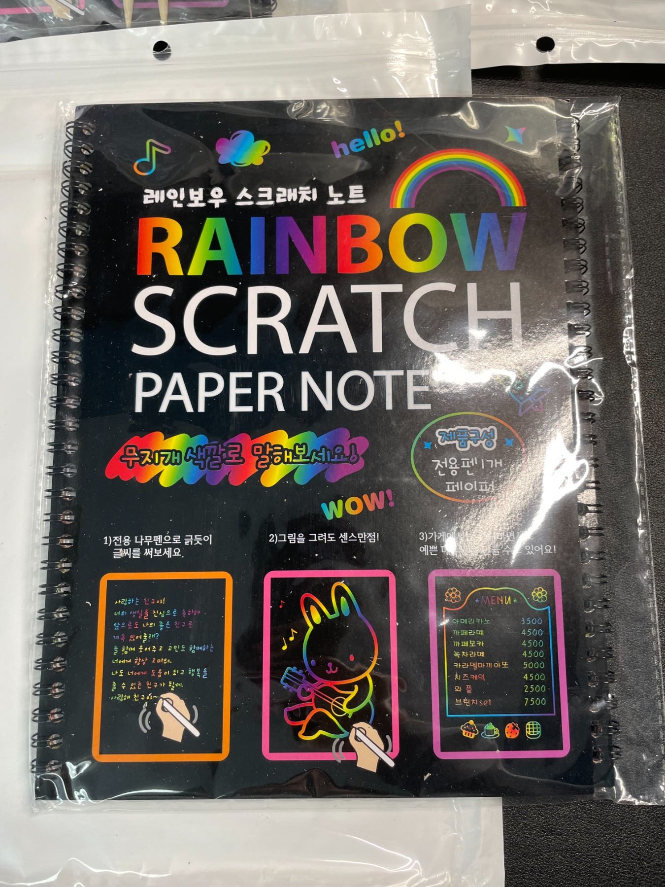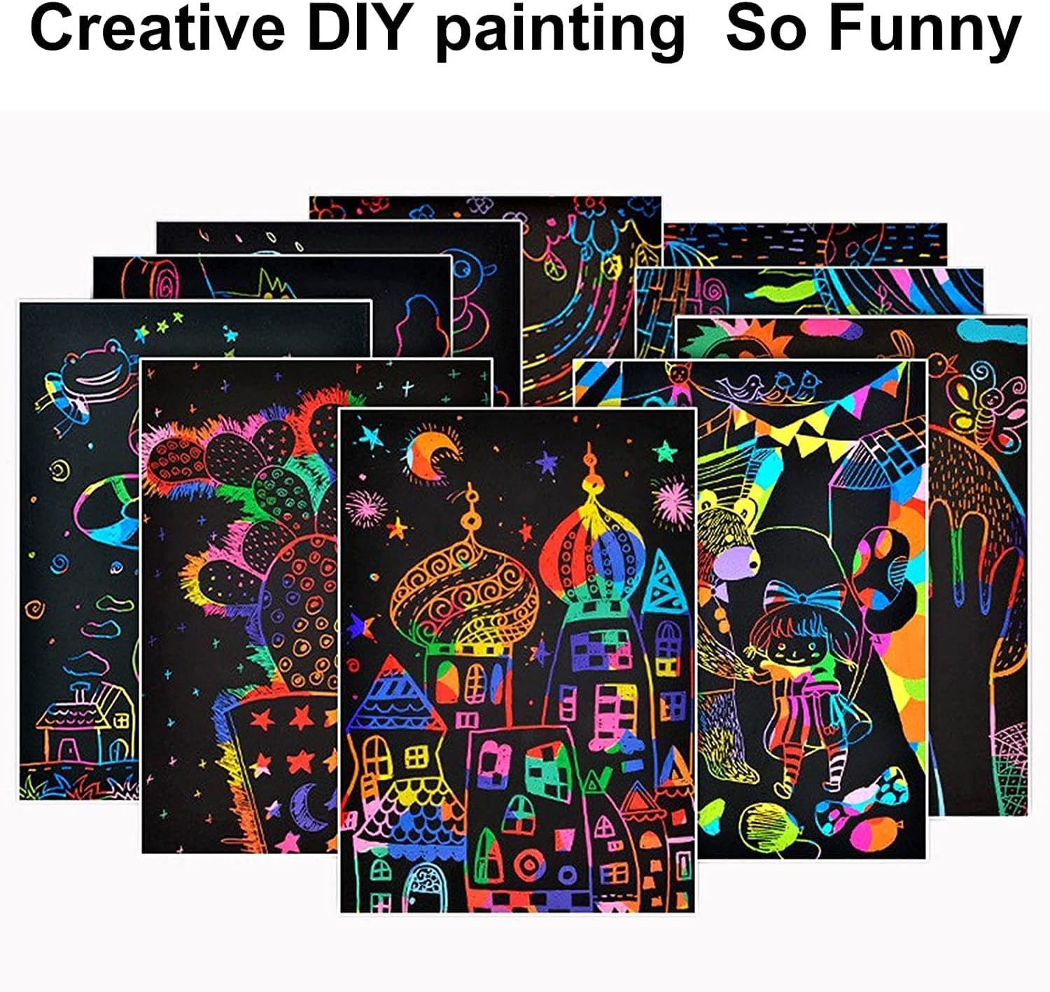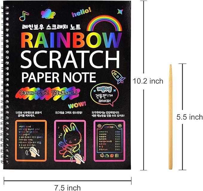 Rainbow Scratch Art Paper for Kids, 2 Pack Scratch Paper Notebooks Set w/ 6 Stencils 2 Wooden Styluses for Drawing Doodling Painting - DIY Arts and Crafts