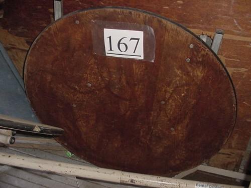 Round wooden tables, Rough, With metal folding legs, 3'?