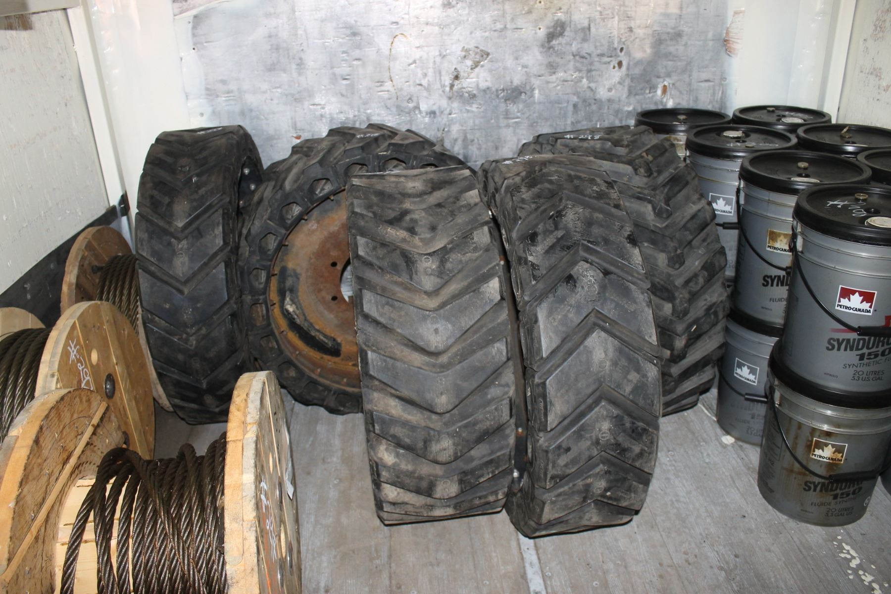 3 SOLID TIRES & 8 HOLE RIMS (12 X 18.5) & 2 SOLID TIRES & 8 HOLE RIMS (12.5 X 15)(ALL FOR ONE MONEY)