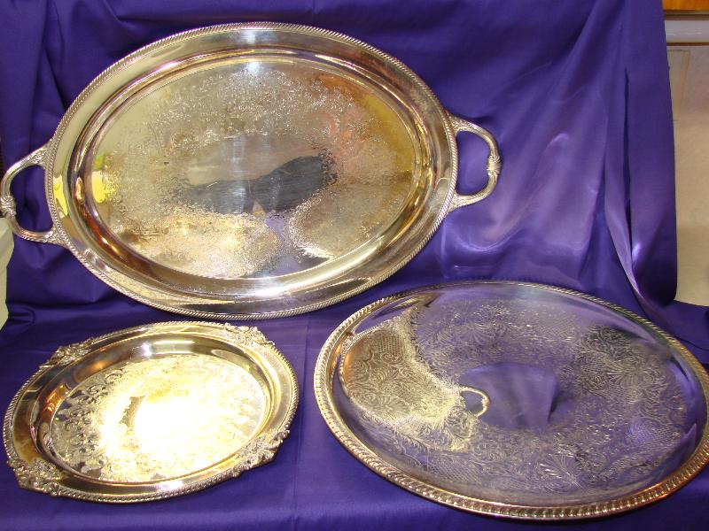 3 Silver serving platters:Castleton(24"),Plate(17 1/2"),Round is 13 1/2"D