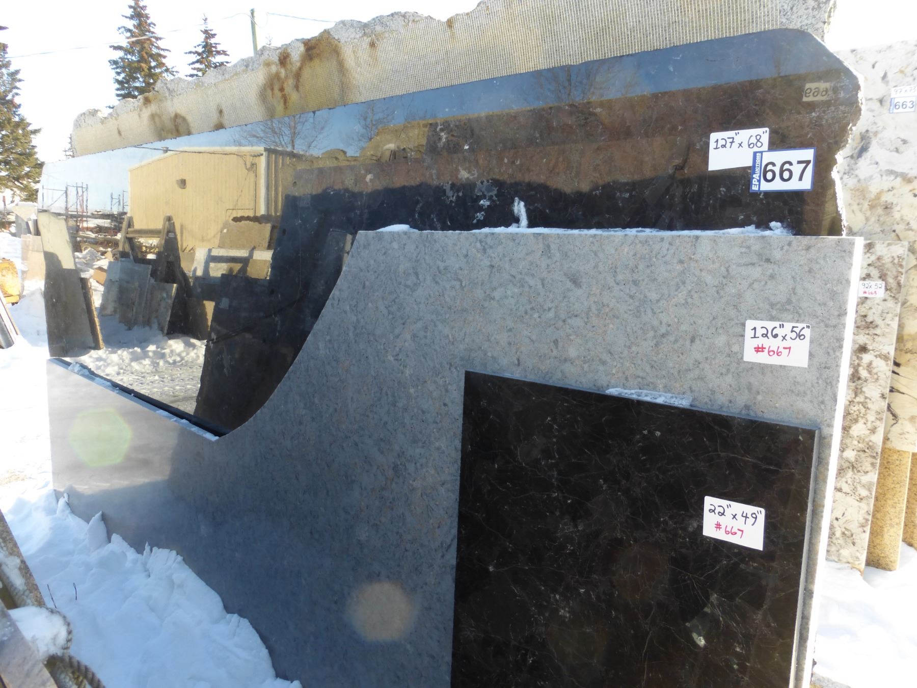 3- Slabs, Various sizes x 3/4" thick, Antique brown Granite and 1 1/4" thick granite (various colors)