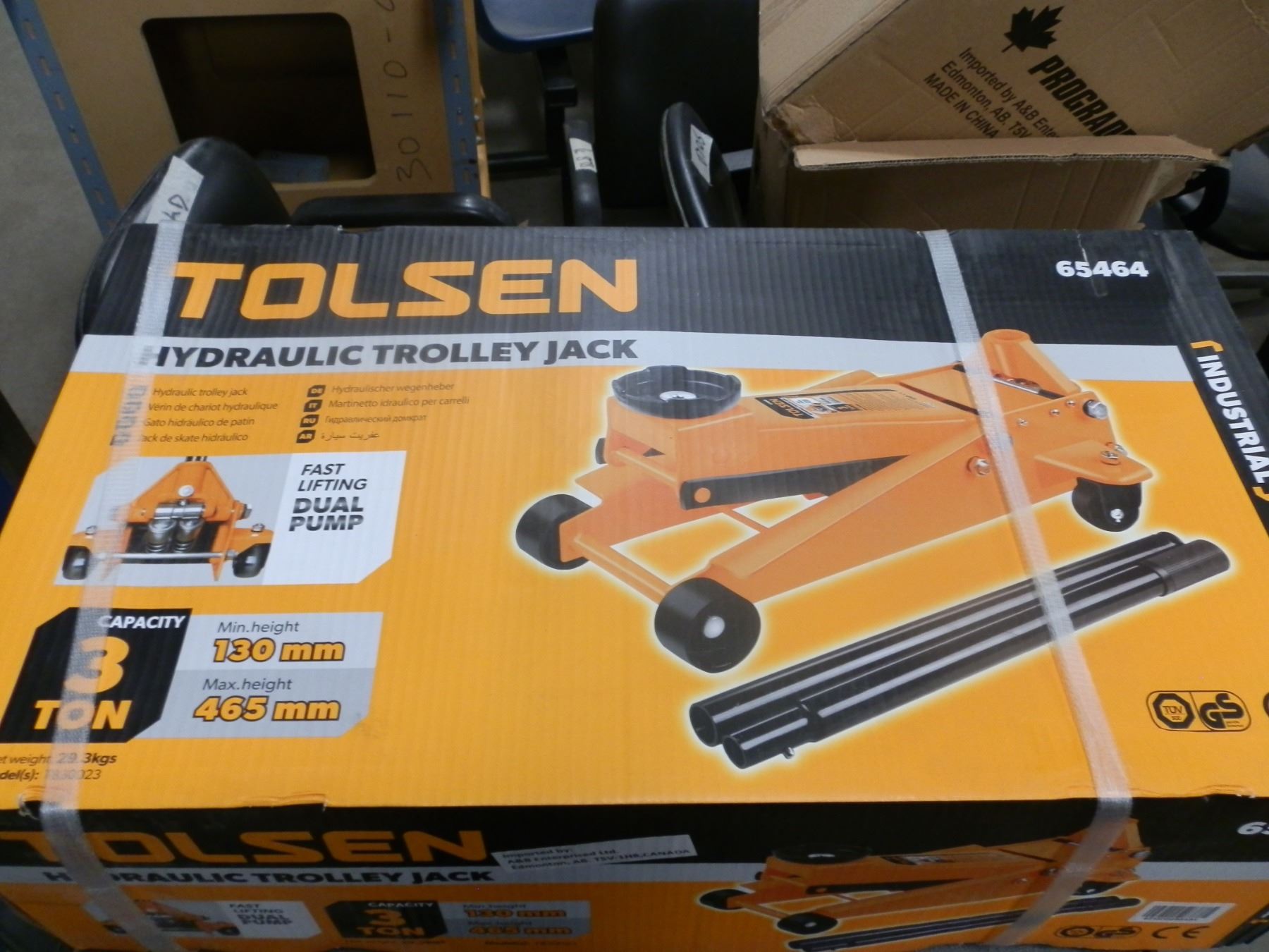 Tolsen 3 Ton Hydraulic Trolley Jack, max height 465mm, with duel pump for fast lifting...New in the box