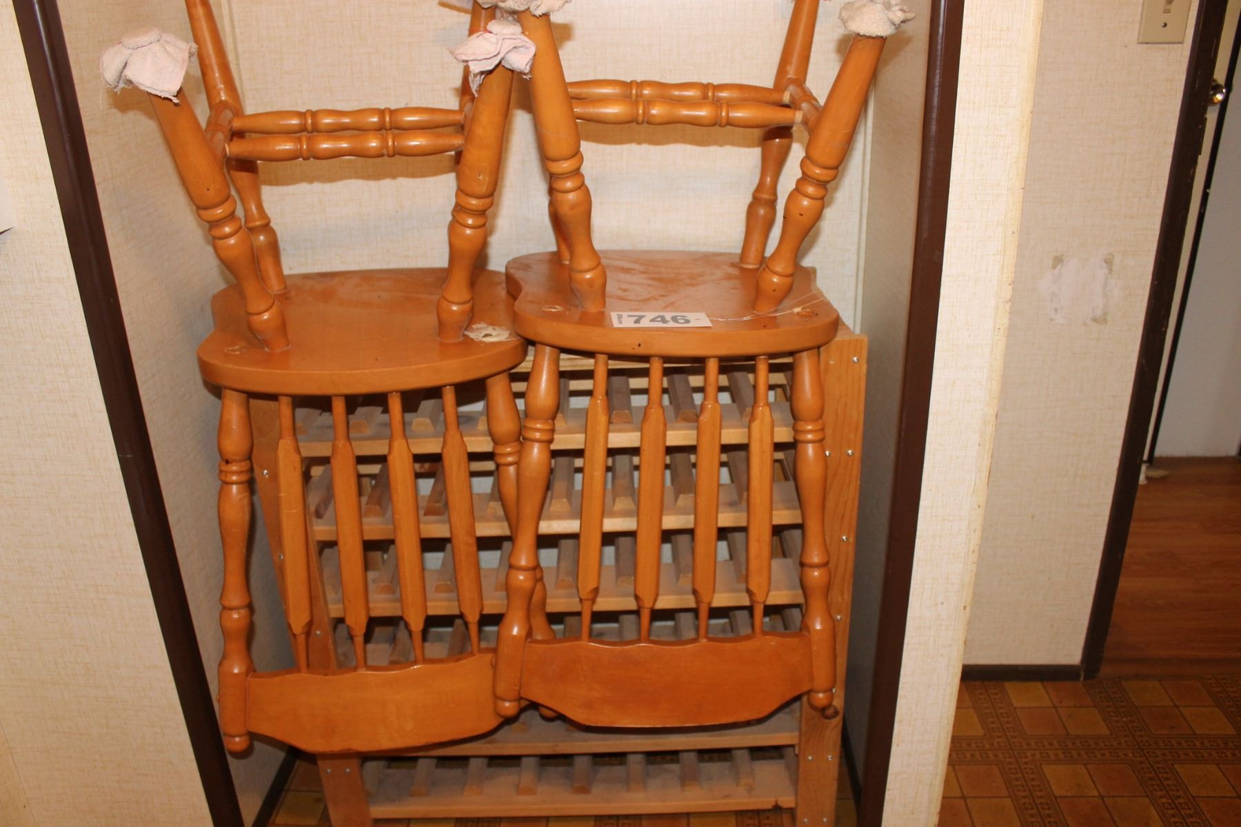 3 WOOD CHAIRS & WOOD WINE RACK