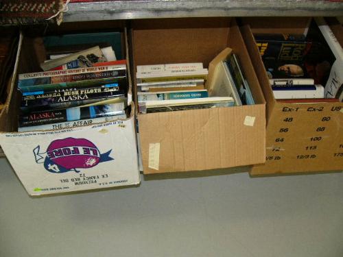 3 boxes of Alaskan books, bush pilots, Lost Heritage of Alaska, I married the Klondike, Great short works of Jack London, Who Owns Alaska?, etc (187)