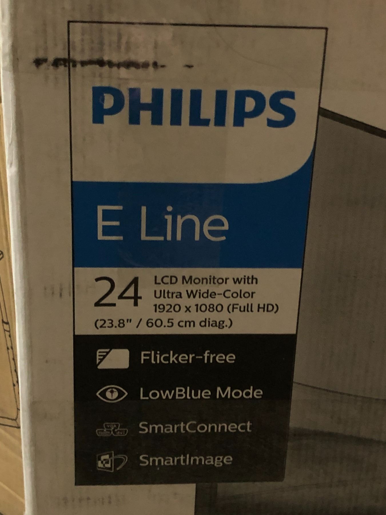 Group of 2 items - PrimeCables ajustable TV tray table w/ Philips E Line 24" LCD monitor (store retu