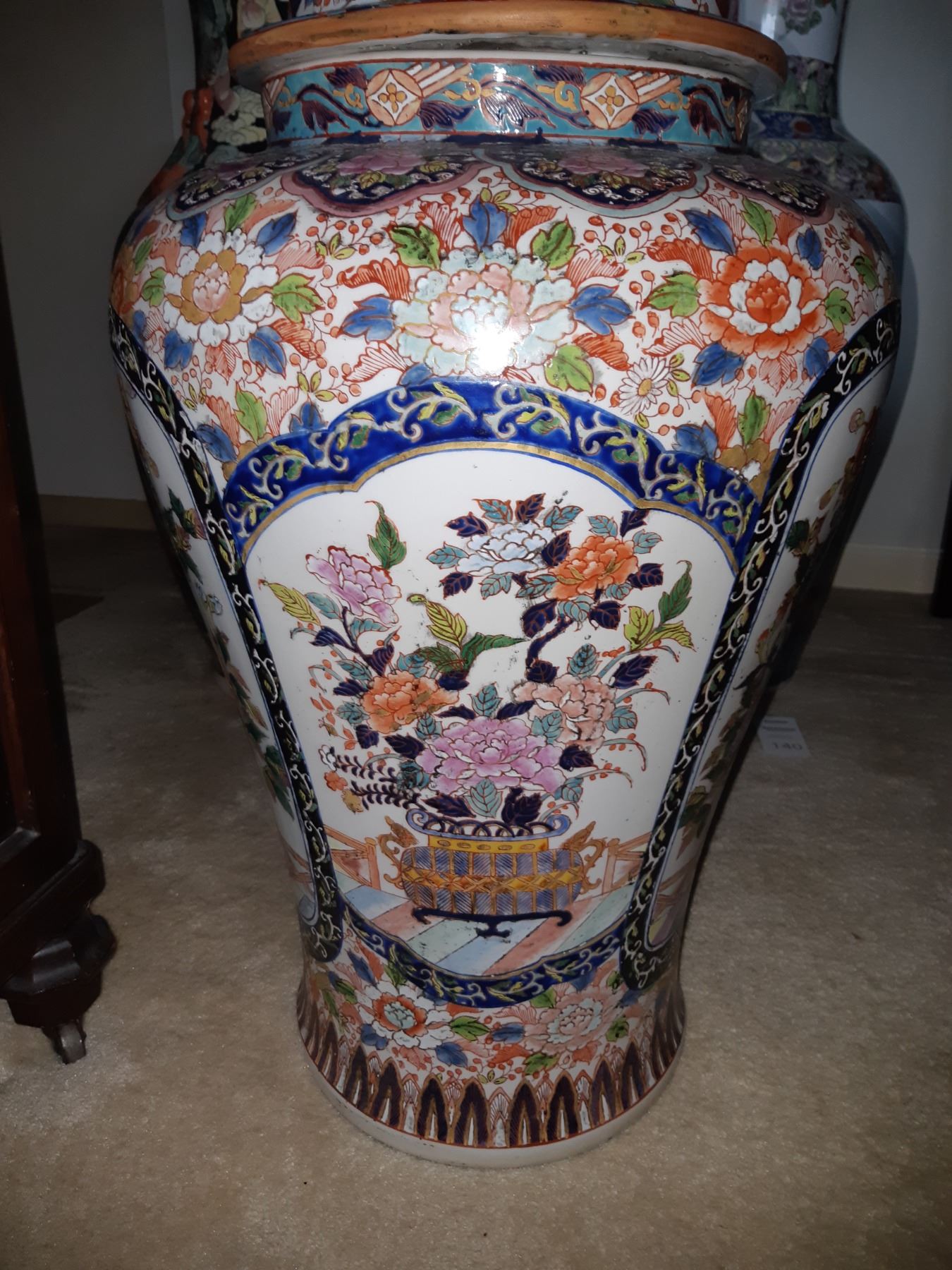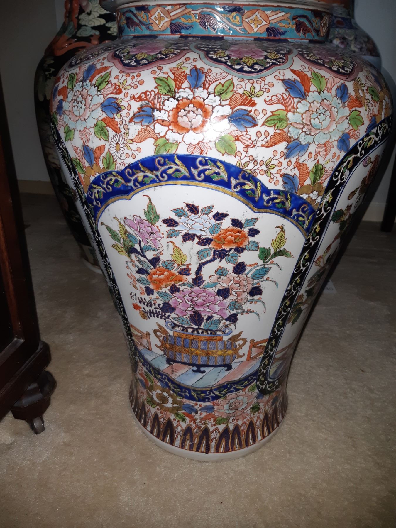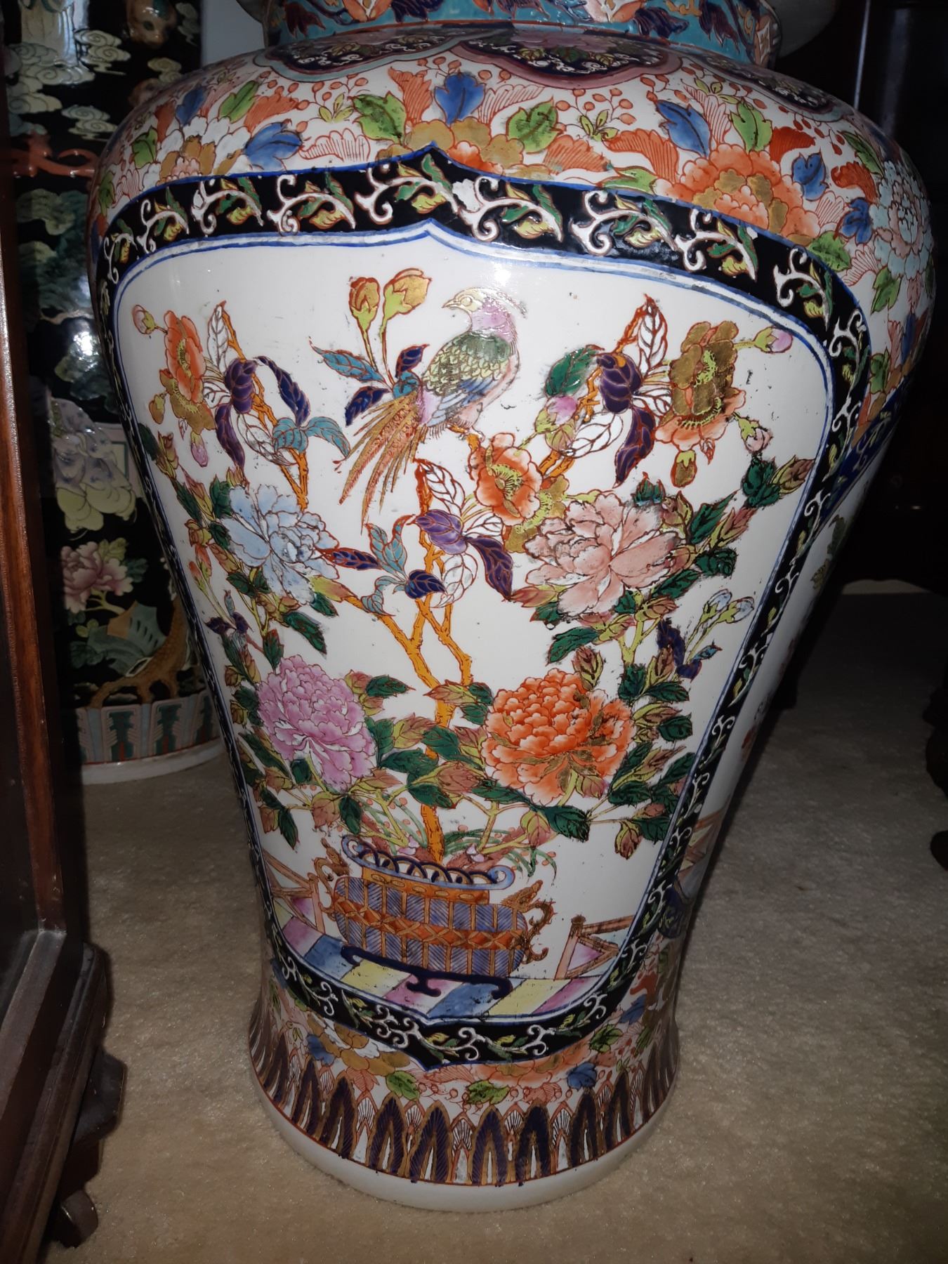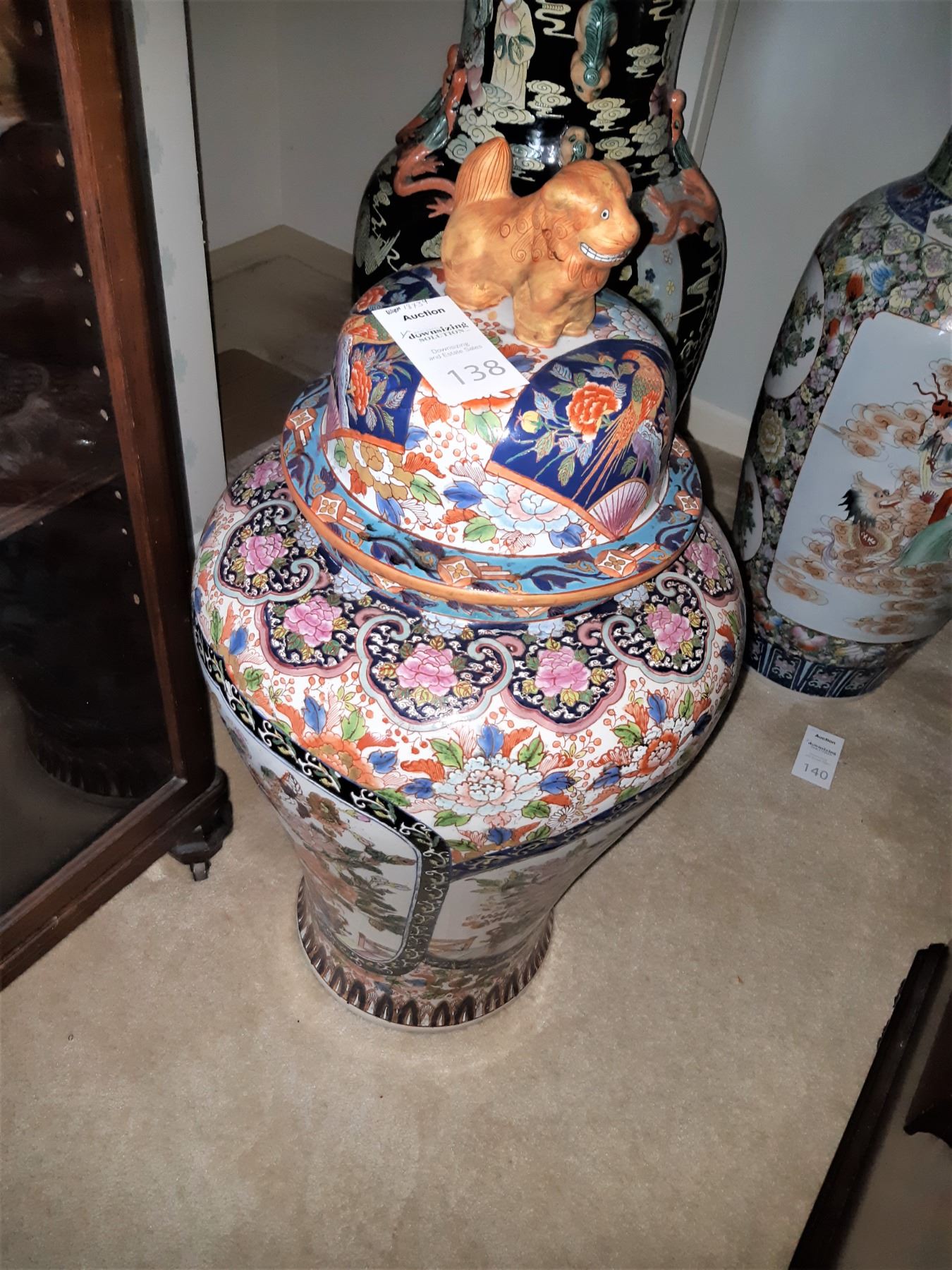34" Chinese lidded Ginger Jar. Lid has Dog on top. Pickup at 10:30 am