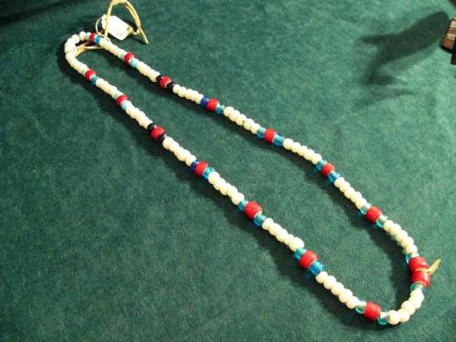 34" Kodiak Trade Bead Necklace, White Hearts & Padres, Blue & White (T Lot)