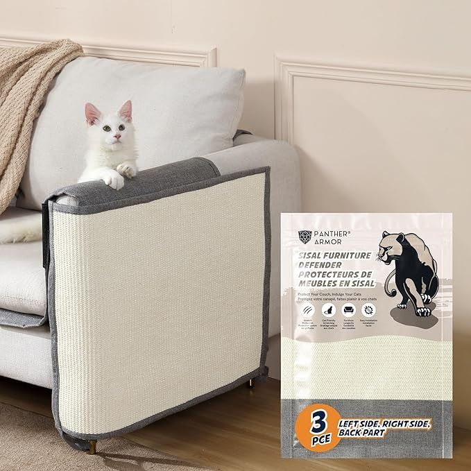- [3pcs] panther armor cat scratch mats for furniture [left & right arm, back rest, grey] - natural sisal couch protector from cat scratching - furniture protectors - cat scratch pads