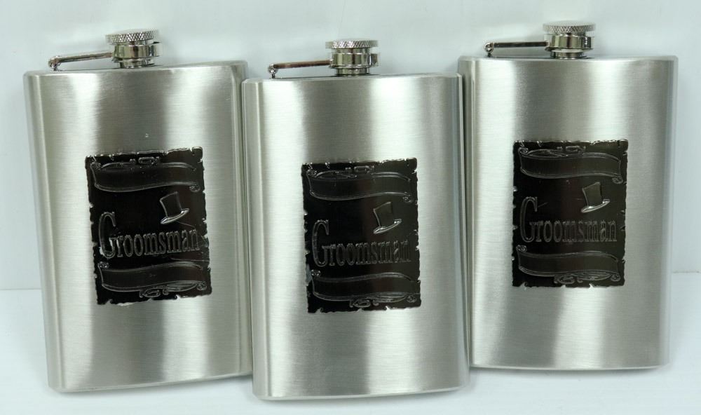 3PK ST. STEEL "GROOMSMAN" 8 OZ FLASKS