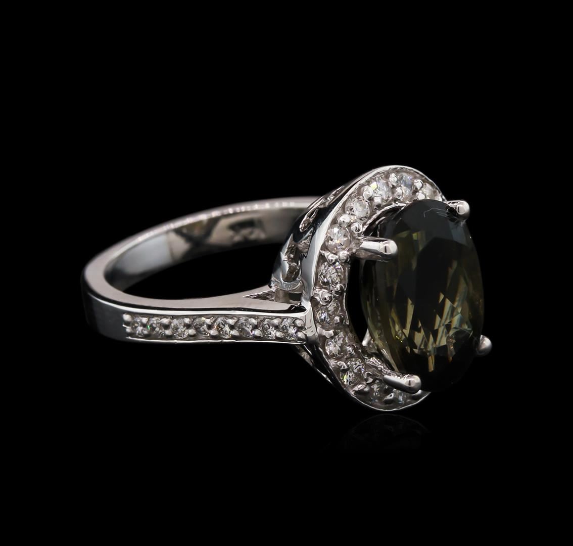 One ring featuring: 14KT white gold weighing 6.12 grams containing one green tourmaline with a total weight of 4.35ct and diamonds with a total weight of 0.53ct.