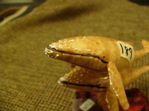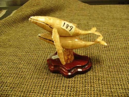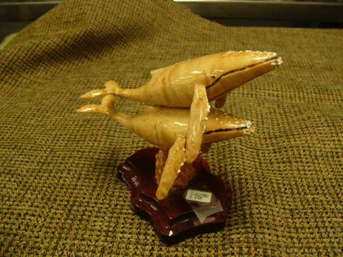 4.5" wood carving of 2 humpback whales on wood base by J.H of Seward, AK - retail $175 (2)