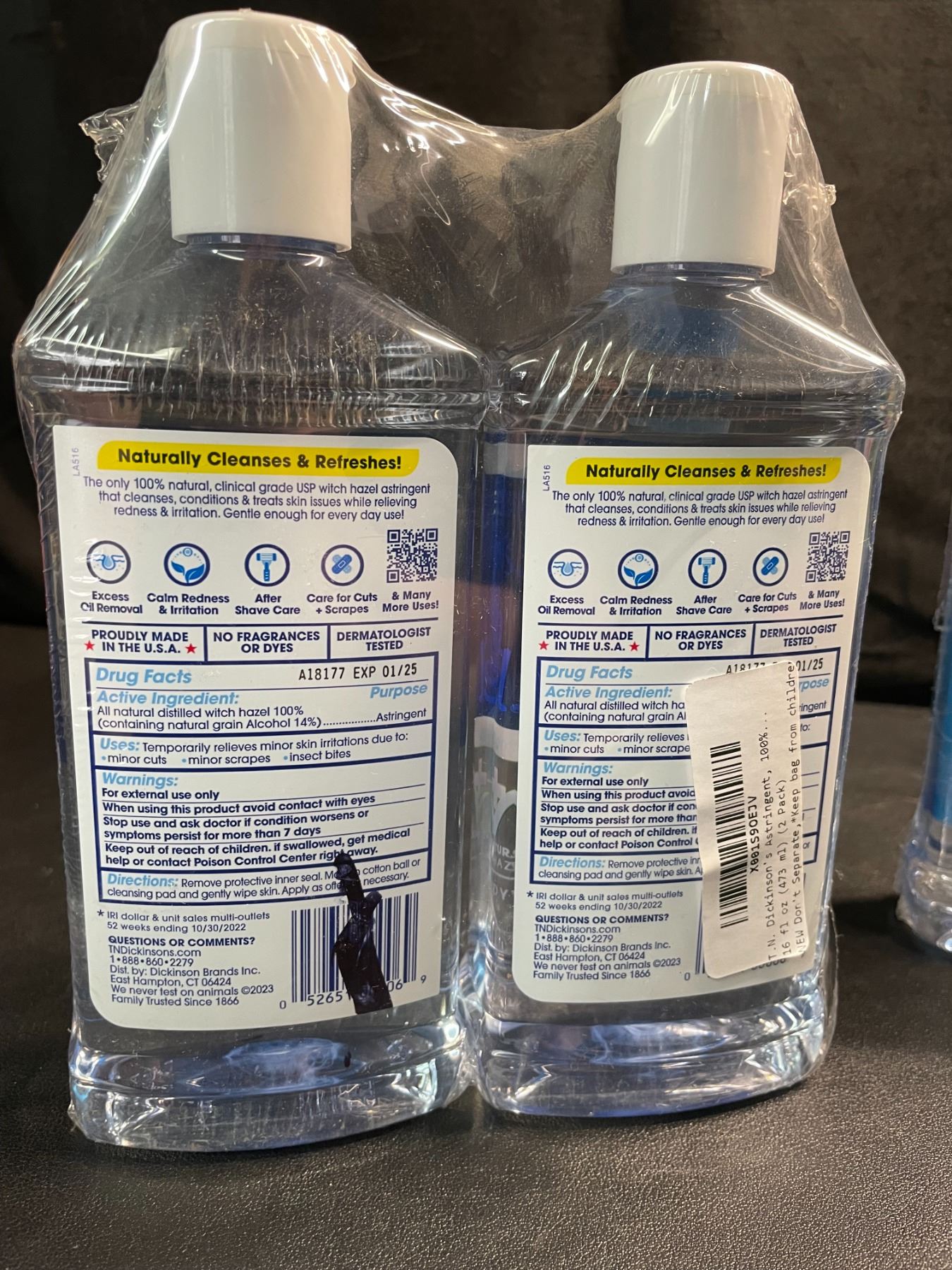 4 Bottles of T.N. Dickinsons Witch Hazel - 100% Natural Astringent Clinical Grade for Face/Body-16oz