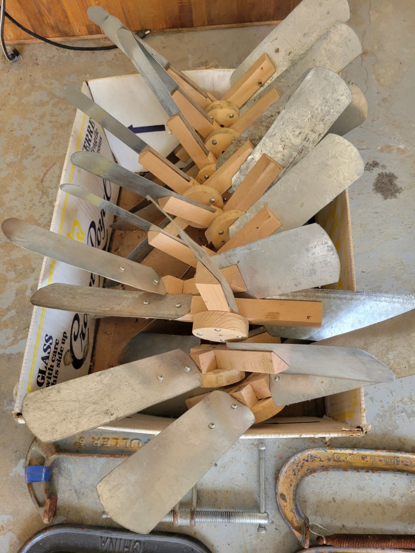 4 C-Clamps & Box of Fan Blades