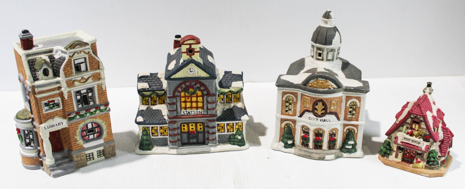 4 CHRISTMAS VILLAGE LIBRARY ETC. LIGHT READY