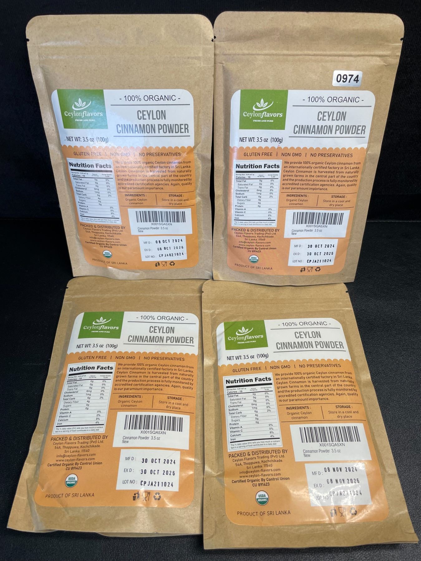 4 Ceylon Flavors Organic Ceylon Cinnamon Powder; Premium Special Grade Non GMO (3.5oz Each)
