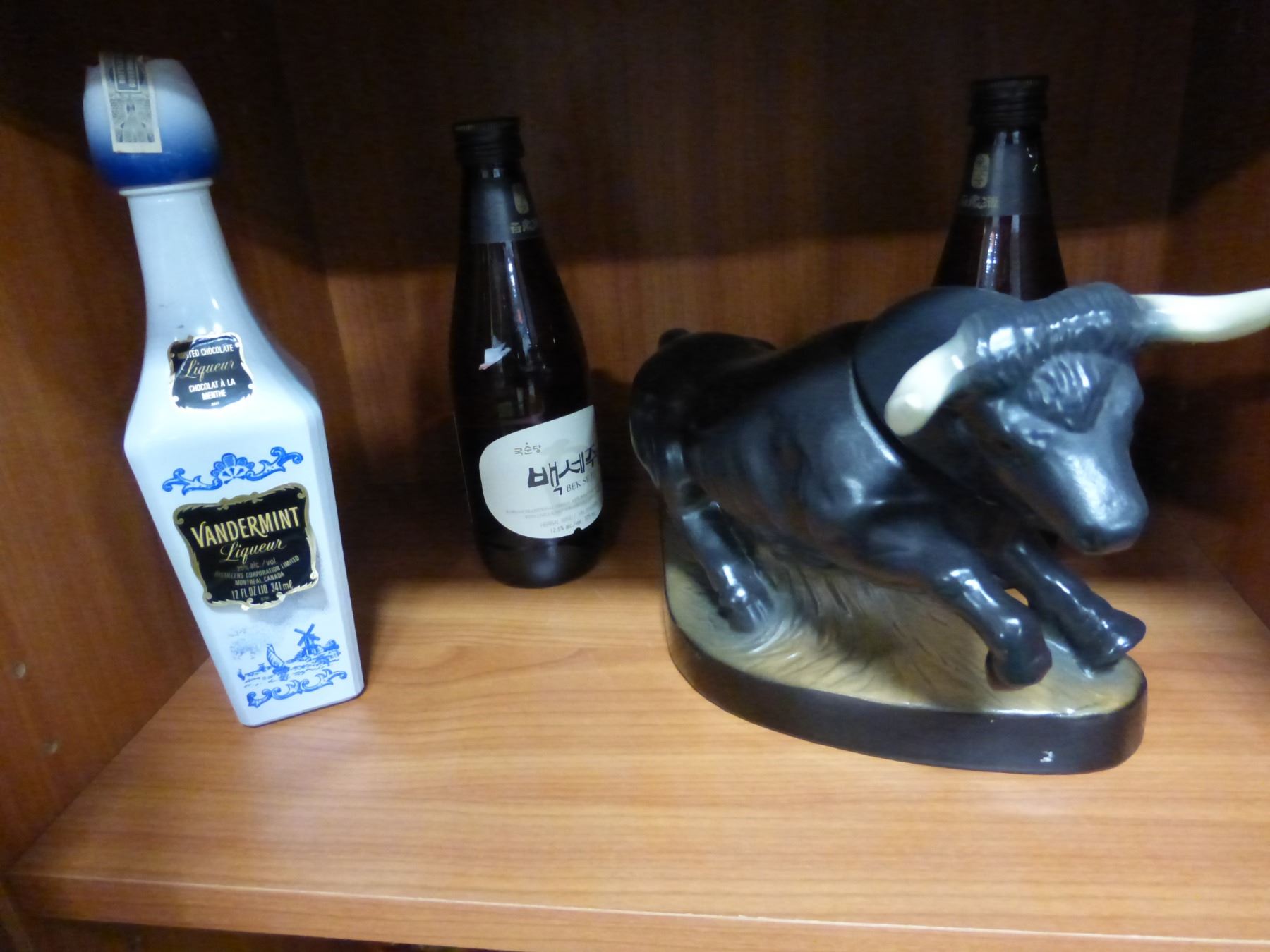 4 DECANTERS INCLUDING BULL, VANDERMINT, ETC