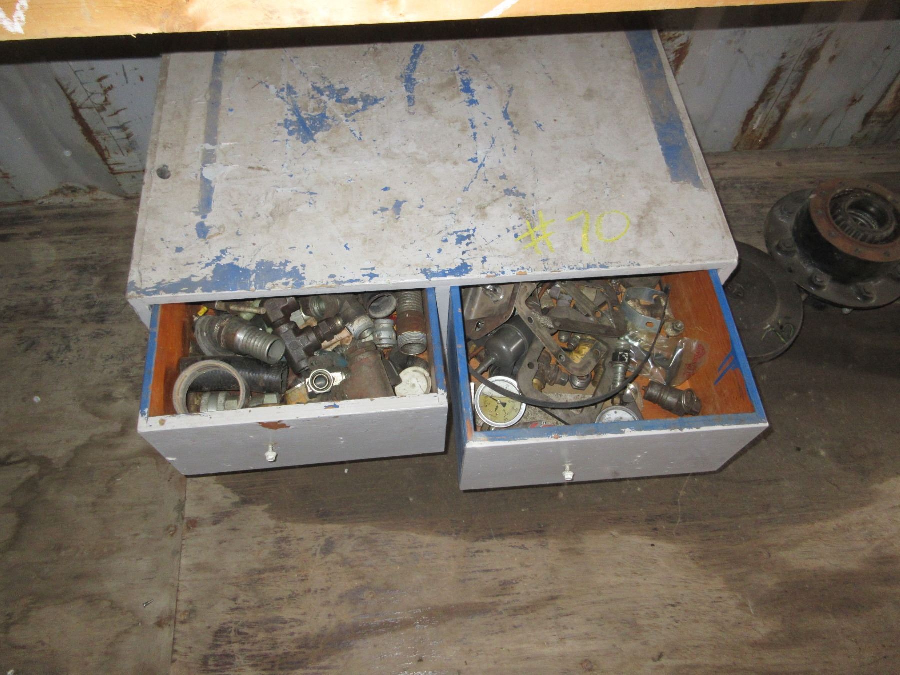 4 DRAWER CABINET C/W PIPE FITTINGS, HYDRAULIC CONNECTORS & CONTENTS