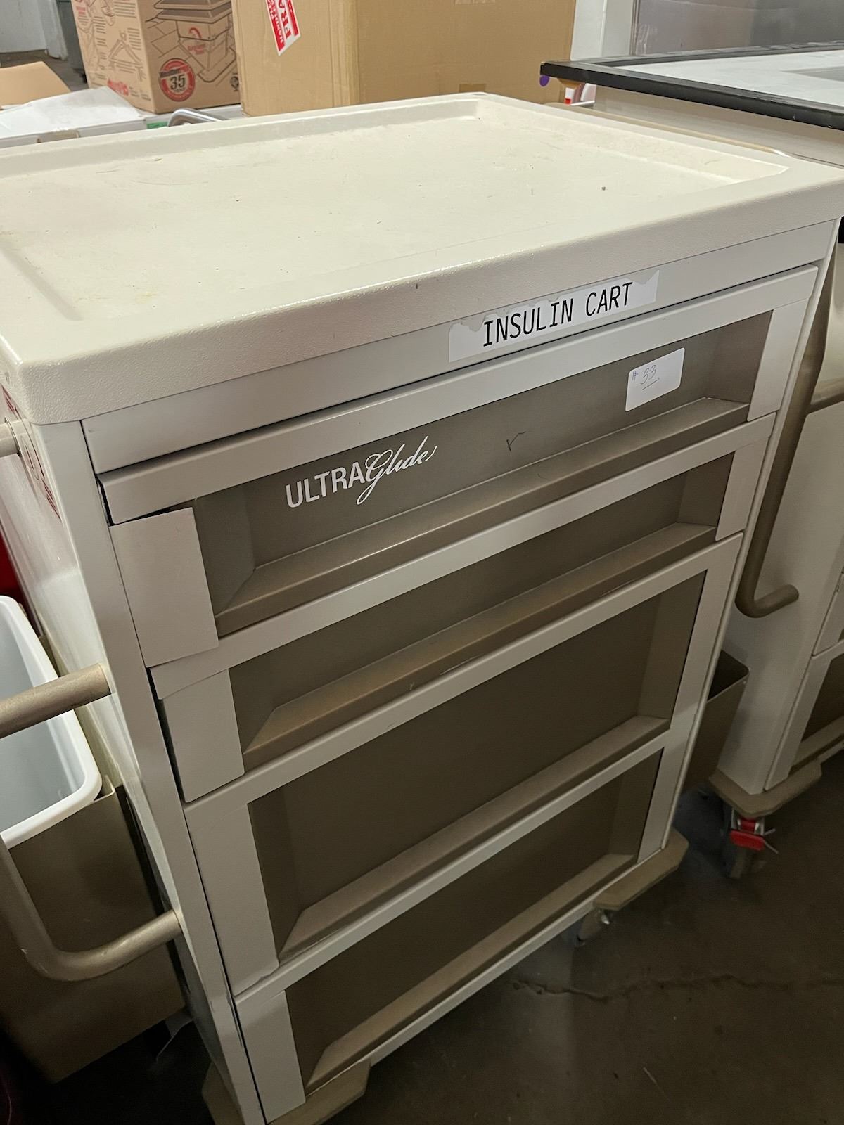 4 Drawer Medical Storage Cart On Wheels, 25"l 20"w 42"h...used