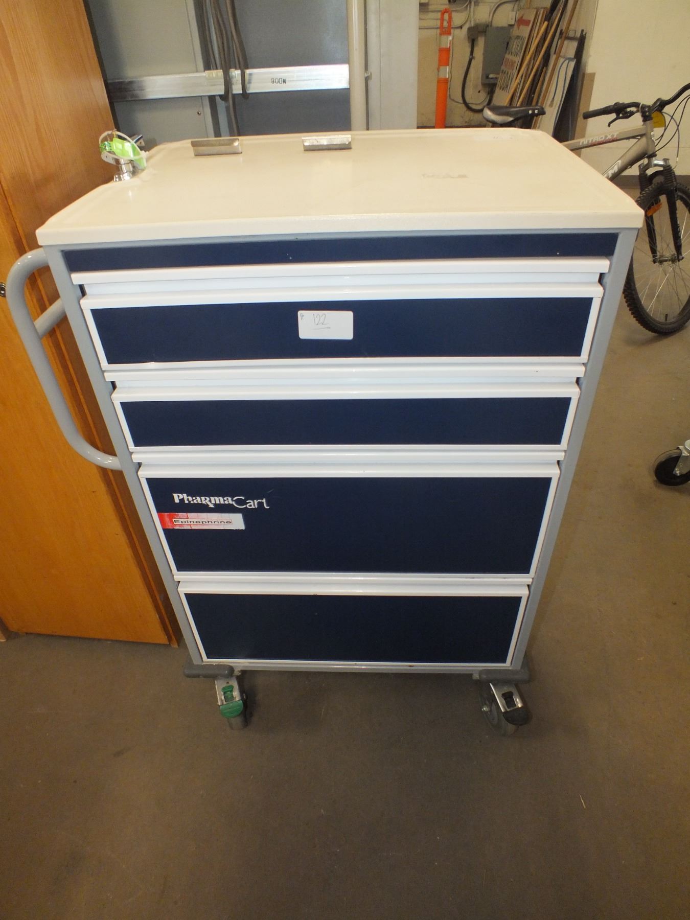4 Drawer Storage Cart w/ Key, 20 1/2" x 19 1/2" x 42"h...used