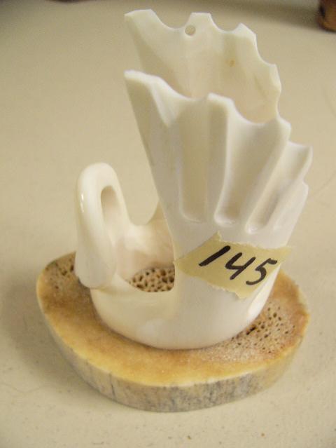 4" Ivory Swan carved by Aningayou of Savoonga mounted on Whalebone (2)