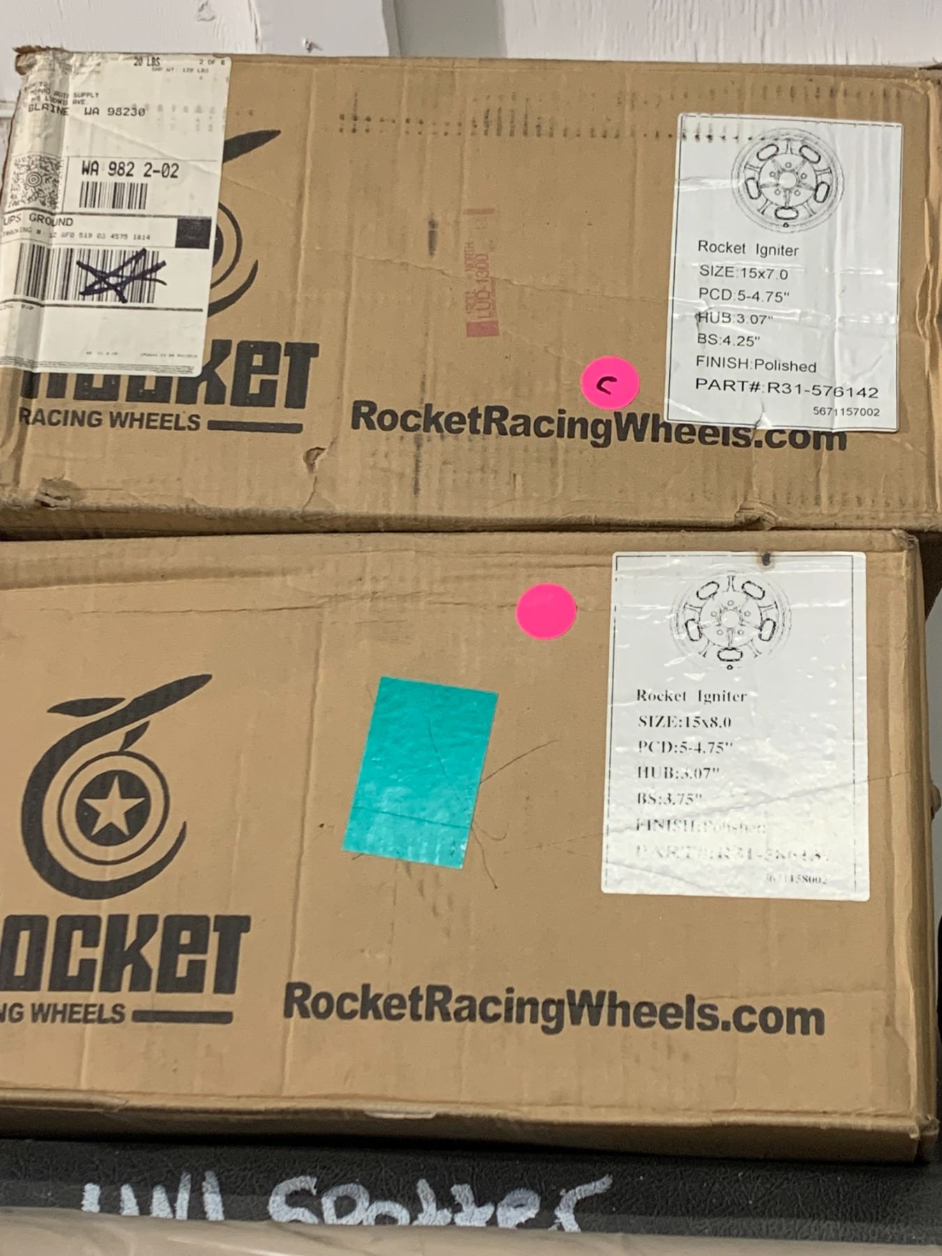 ROCKET RACING IGNITER Series R30-666135 Polished Wheels 15x7 4.25 Backspace & 15x8 3.75 Backspace 5on4.75 Bolt Pattern. CHEV-GM ***GREAT VALUE AT THIS PRICE*** (Retail Value $1680)
