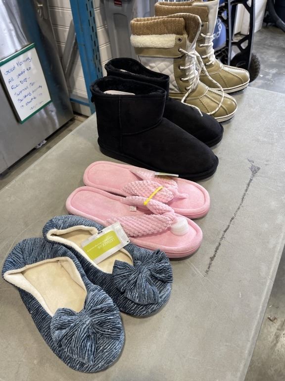 4 NEW PAIRS OF WOMENS SIZE 11 BOOTS AND SLIPPERS