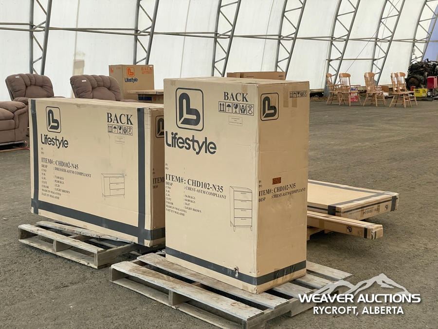 Specifications: *UNUSED, QUEEN BED, DRESSER, CHEST, NIGHT TABLE