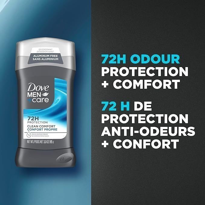 - dove men+care deodorant stick aluminum-free deodorant formula for 72h protection clean comfort with ¼ moisturizing cream, 85g (pack of 4)
