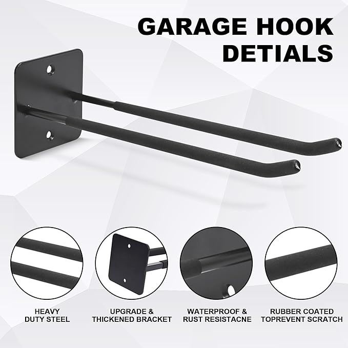 Heevir Large Garage Hooks Heavy Duty - 4 Pack 12.2" Long Garage Storage Utility Hooks, Wall Mount Ladder Hanger, Garage Organizer for Hanging Tool, Chairs, Hoses, Garden Tool, Bulk Items, Ropes, etc.