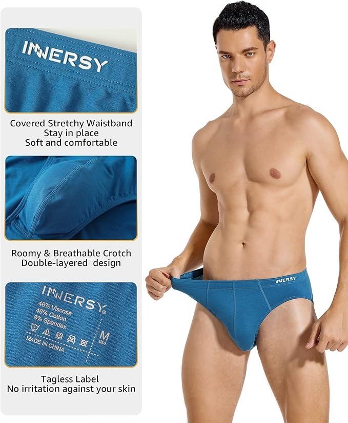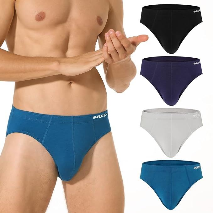 INNERSY Men's Tag-Free Basic Underwear No Fly Pouch Cotton Briefs 4-Pack