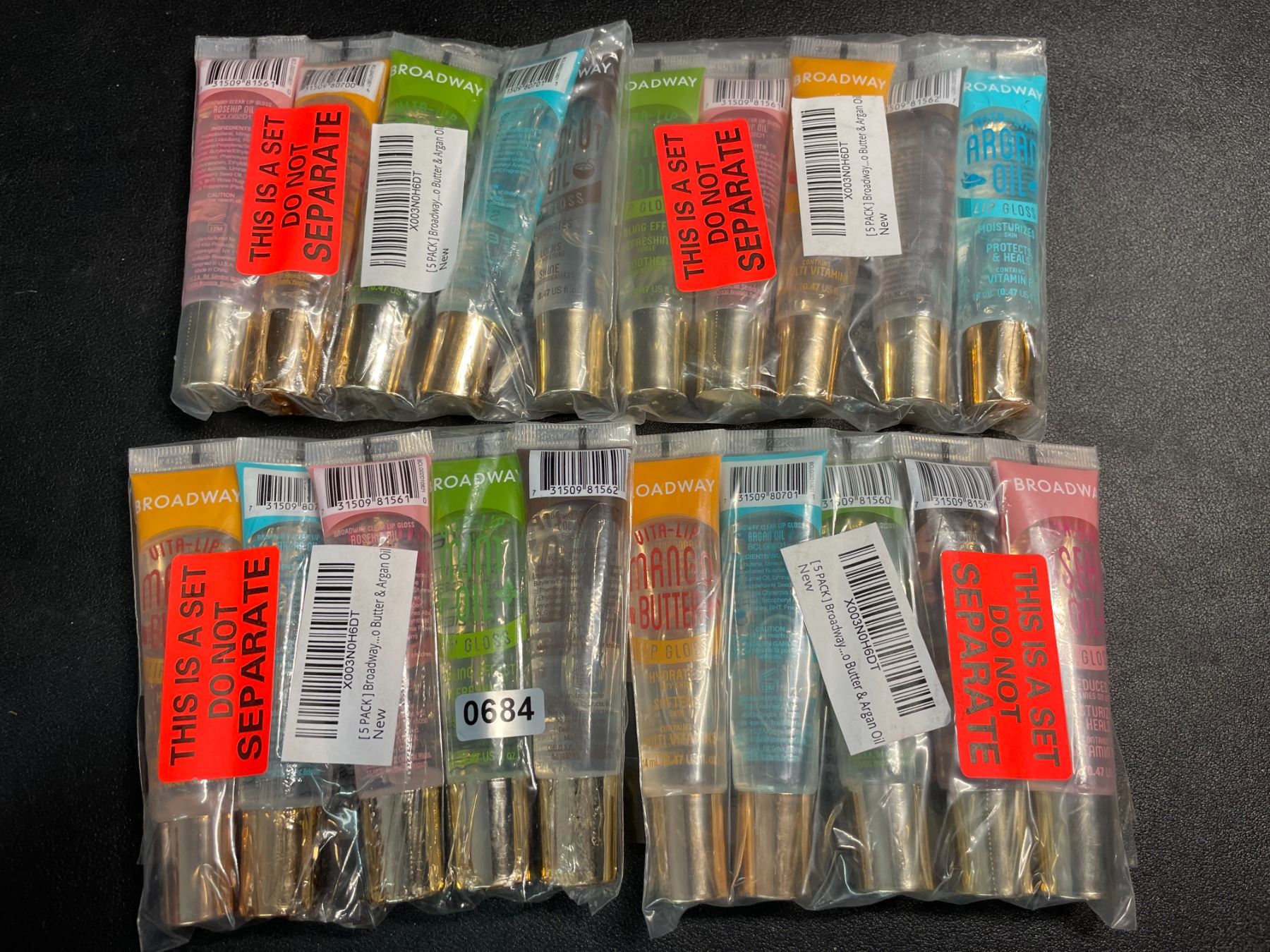 4 Packs of Broadway Vita-Lip Clear Lip Gloss (5PCS; Mint, Coconut, Rosehip, Mango Butter, Argan Oil)
