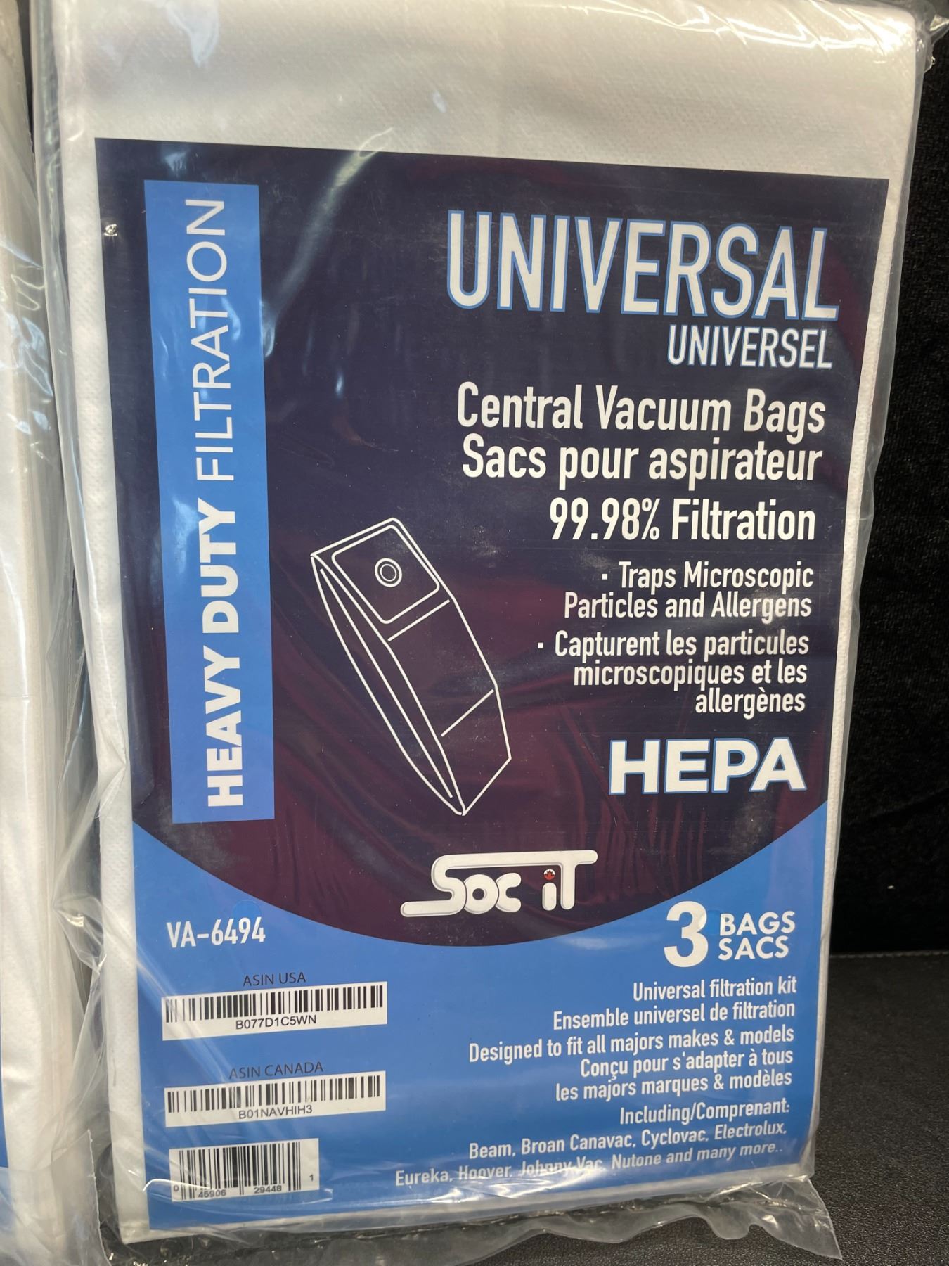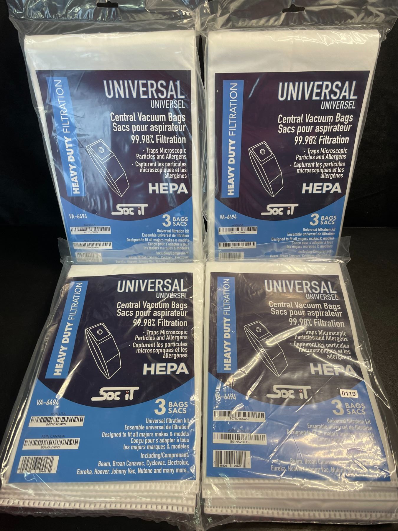 4 Packs of Universal Central Vacuum Bags - Heavy Duty Filtration - New - 3 Bags Per Pack