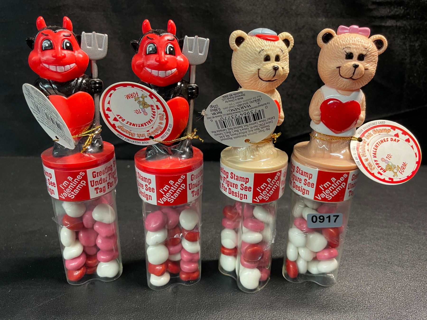 4 Valentines Greeting Stamp/Candy Dispensers - New
