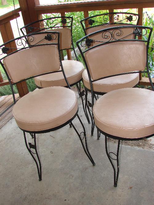 4 Wrought Iron patio chairs w/cushioned seats & backs