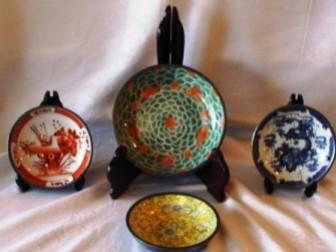 (4 pcs), 7 3/4" & (3) 6" Pewter Encased Porcelain Bowls