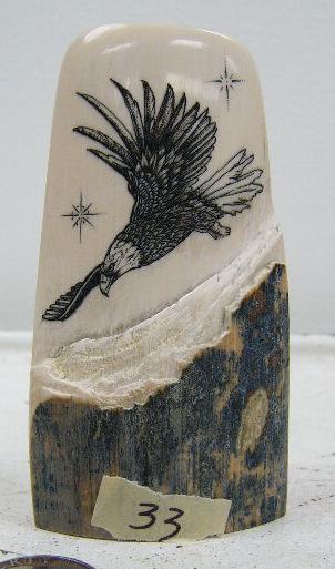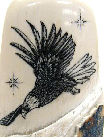 4" scrimshawed mammoth ivory bark with flying eagle by Homer Cole (114)
