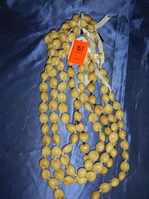 4 strands blonde "Kukui nuts". Hand knotted on silk ribbon. These jewel nuts were worn by nobility in ancient Hawaii.