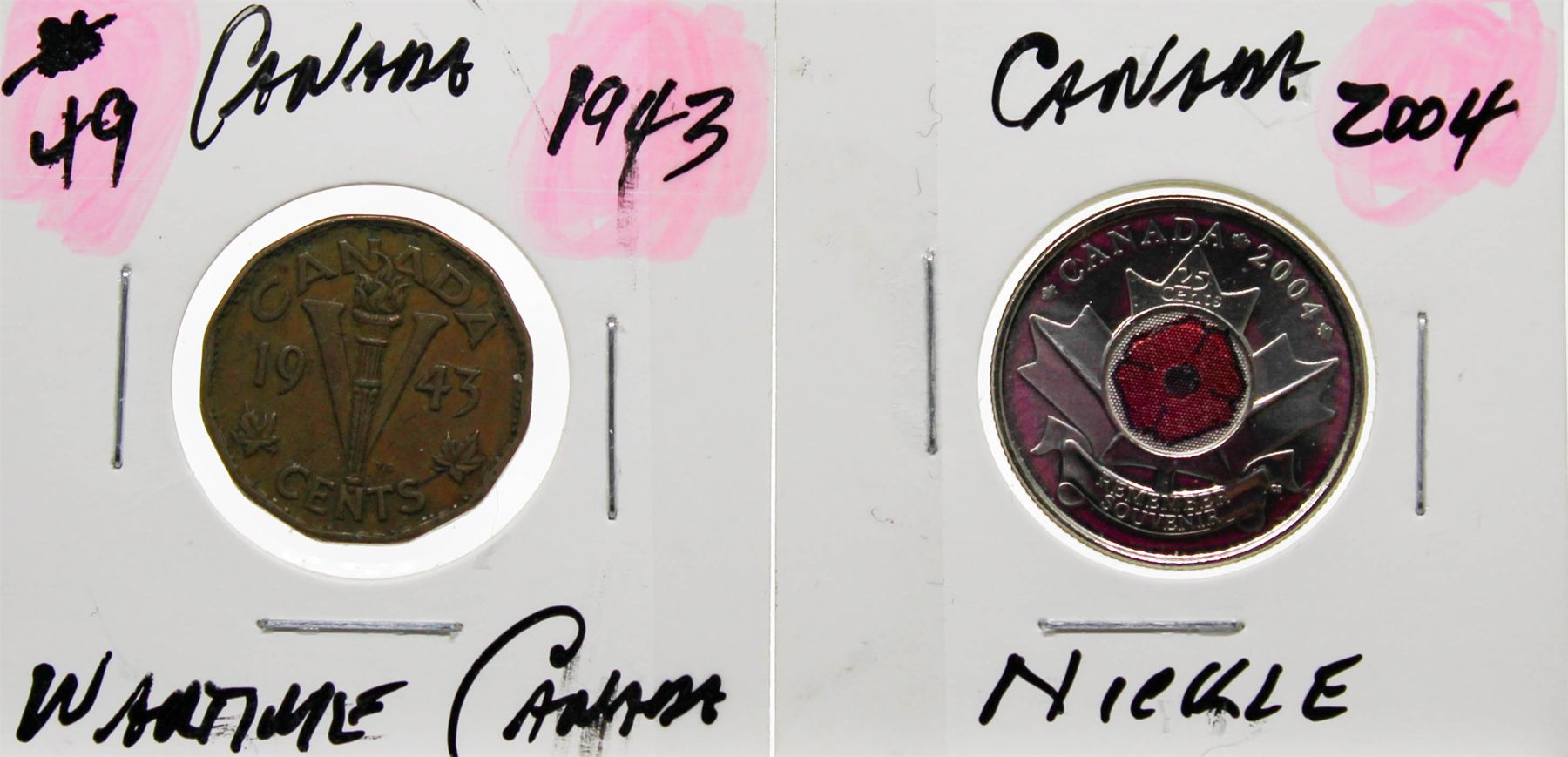'43 CANADA WARTIME & 2004 REMEMBRANCE DAY COINS