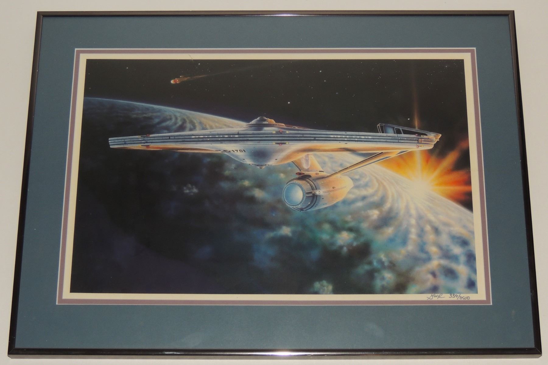 21 X 15.5 INCHES IN SIZE, PROFESSIONALLY FRAMED PRINT- SIGNED AND NUMBERED 339/3500 NCC-1701-A USS ENTERPRISE SIGNED PRINT